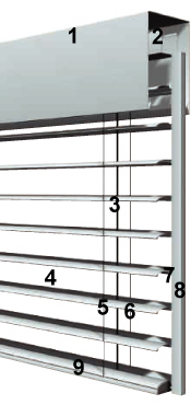 Räumen geeignet. Durch die Lamellengeometrie wird ein sehr guter Lamellenschluss erreicht und der UV-beständige Kunststoffkeder in der Lamellenvorderkante schließt auch den kleinsten Lichtspalt. Alle anderen, üblichen Funktionen unserer Außenraffstores bleiben aber dennoch auch mit unseren Abdunkelungsraffstoren erhalten. |