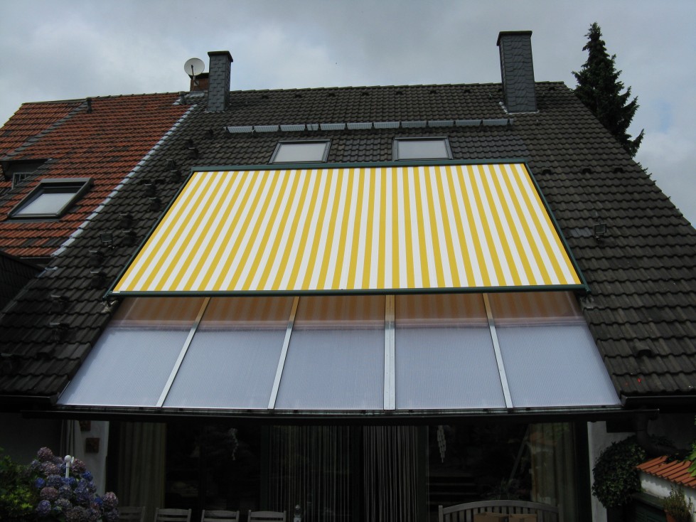 Kastenmarkisen farblich integriert in eine Fassade, Erkrath