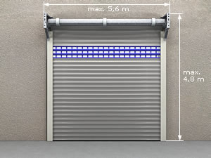Rolltor F1 Flanschplattentor mit Anrollsystem und Körperschalldämmung für den leichten Gewerbeeinsatz. Elementbreiten bis 560 cm bzw. Höhen bis 480 cm sind mit F1-Toren realisierbar. |